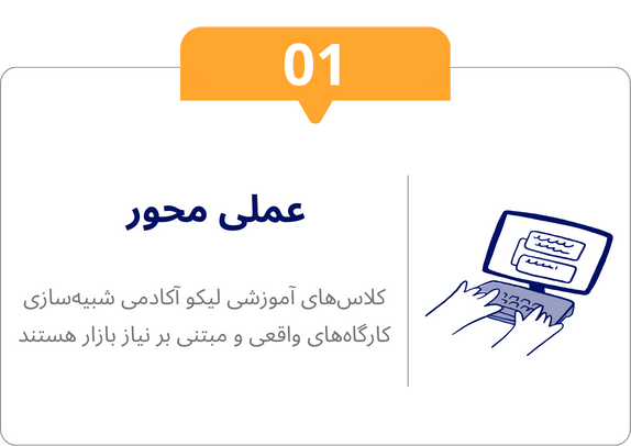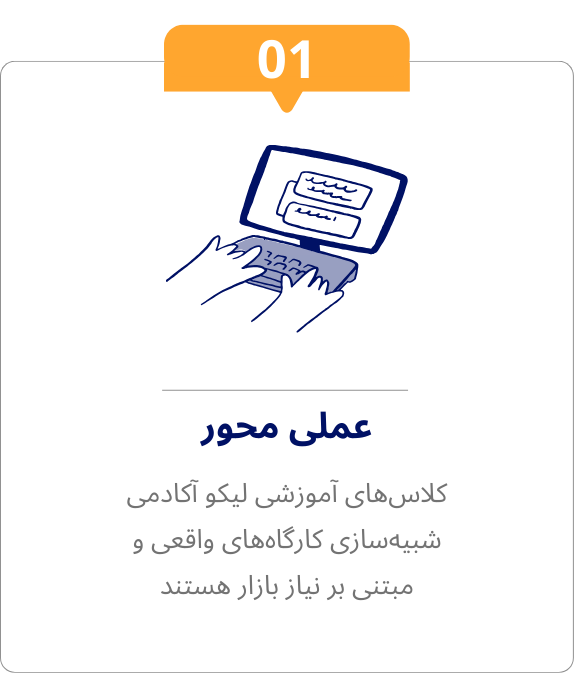 هدف دانشجوها از شرکت در کلاس های آنلاین یادگیری عملی مهارتها و بعضاً استخدام پس از یادگیری است. کلاسهایی که بر روی آموزش تئوریک تمرکز دارند یا تمرین کردن را تنها به دانشجو میسپارند و زمانی برای بررسی آنها نمیگذارند، دانشجو را به هدف او نزدیکتر نمیکنند. دوره های آموزشی لیکو آکادمی با هدف تحقق این هدف طراحی شدهاند و علاوه بر پوشش آموزش تئوریک و تخصصی مفاهیم، بر روی آموزش عملی تمرکز ویژهای دارند. درست مانند کارگاه های عملی، تمرین و یادگیری عملی بخشی جداناپذیر از هر کدام از دوره های آنلاین لیکو آکادمی است و شما برای اتمام دوره و مشاهده هر درس، حتماً بایستی تمرینات دروس قبلی آن را انجام دهید.